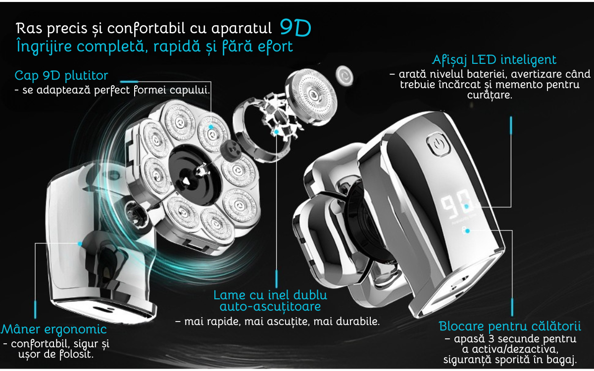 Daca vrei un aparat modern, usor de folosit si cu rezultate profesionale, Aparatul de ras 9D este solutia perfecta pentru tine.