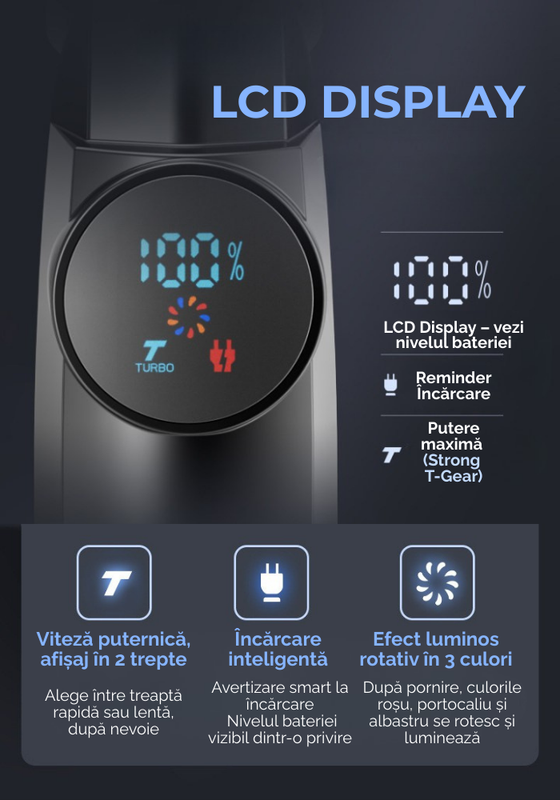 🔇 Motor silentios, dar puternic 7200RPM Functionare discreta, dar eficienta, ideala si pentru copii