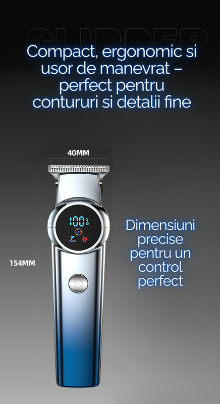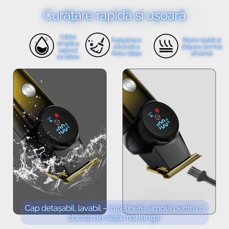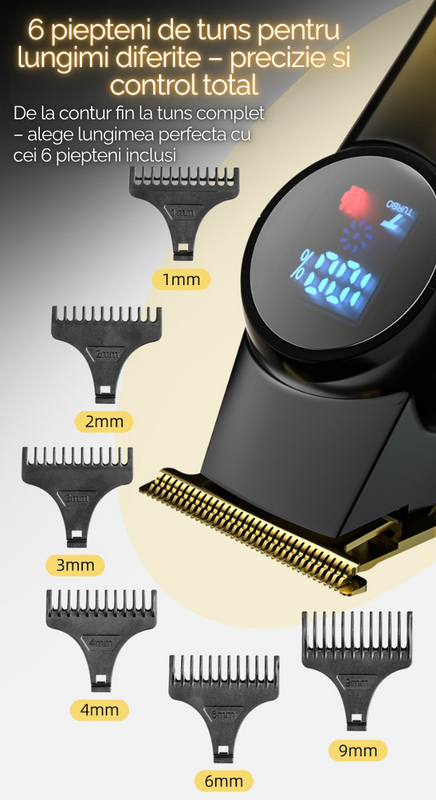 Transforma fiecare tuns intr-o experienta de salon cu aceasta masina de tuns, echipata cu motor brushless ultra-silentios, lame din aliaj de titan si afisaj digital inteligent. Un aparat versatil, perfect atat pentru uz personal, cat si profesional, inclusiv pentru frizerii sau tunsul animalelor de companie.