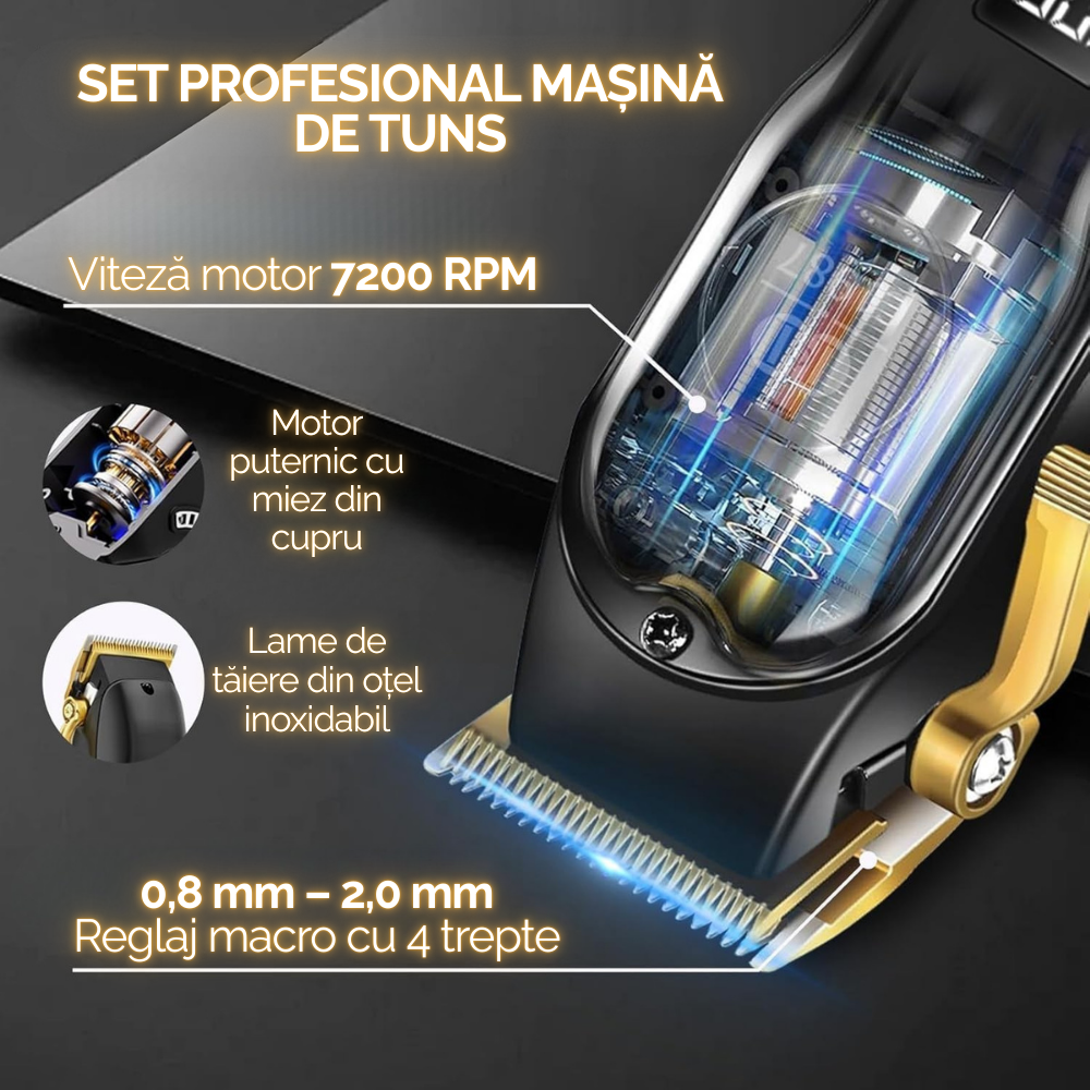 Masina de tuns este echipata cu lame din otel inoxidabil autoascutitoare si o margine de protectie in forma de R, prietenoasa cu pielea, oferind o taiere lina si sigura, fara smucituri sau iritatii. Motorul puternic cu pana la 7200 rotatii pe minut taie eficient orice tip de par, inclusiv par gros, pastrand un nivel scazut de zgomot (<45 dB), fiind potrivita chiar si pentru copii.