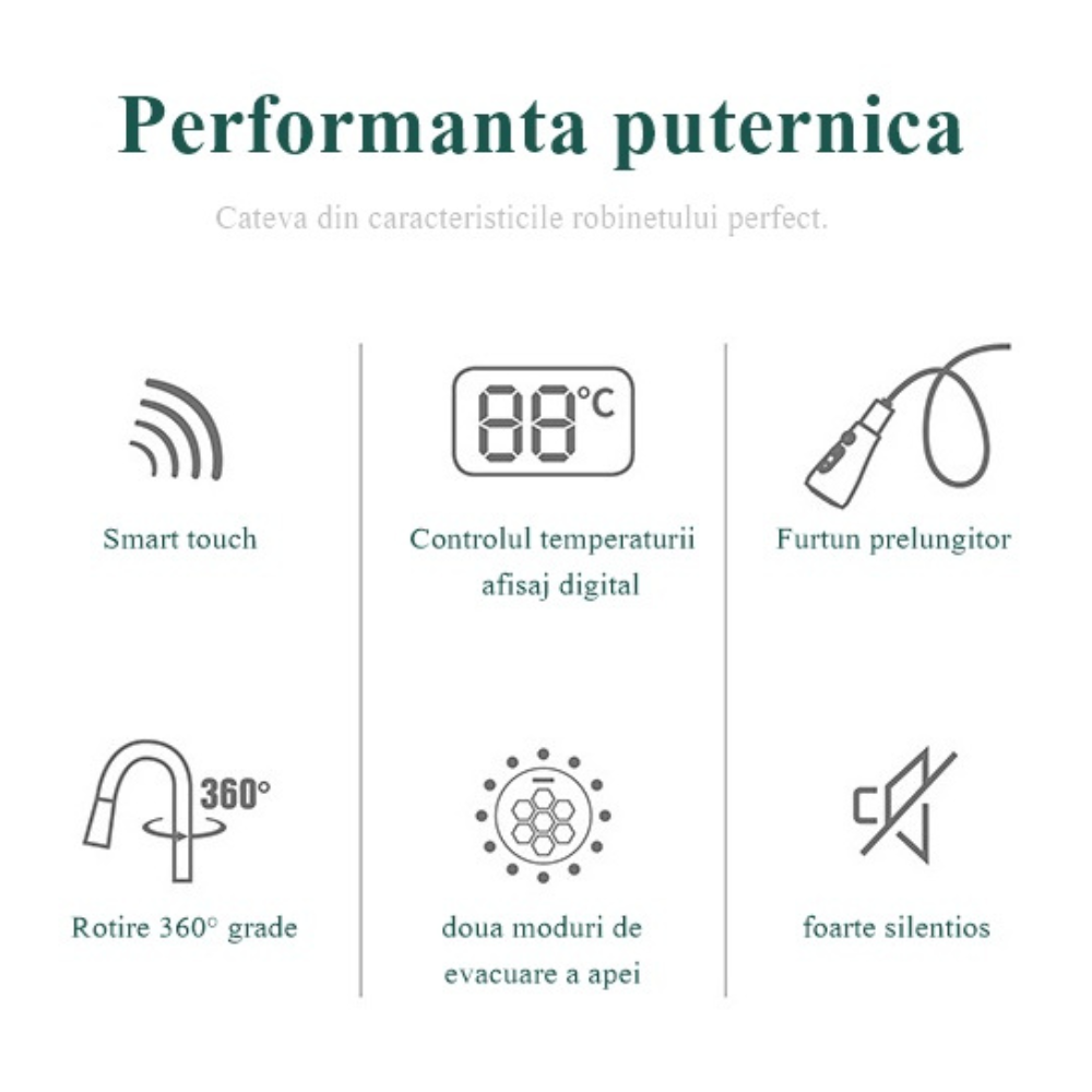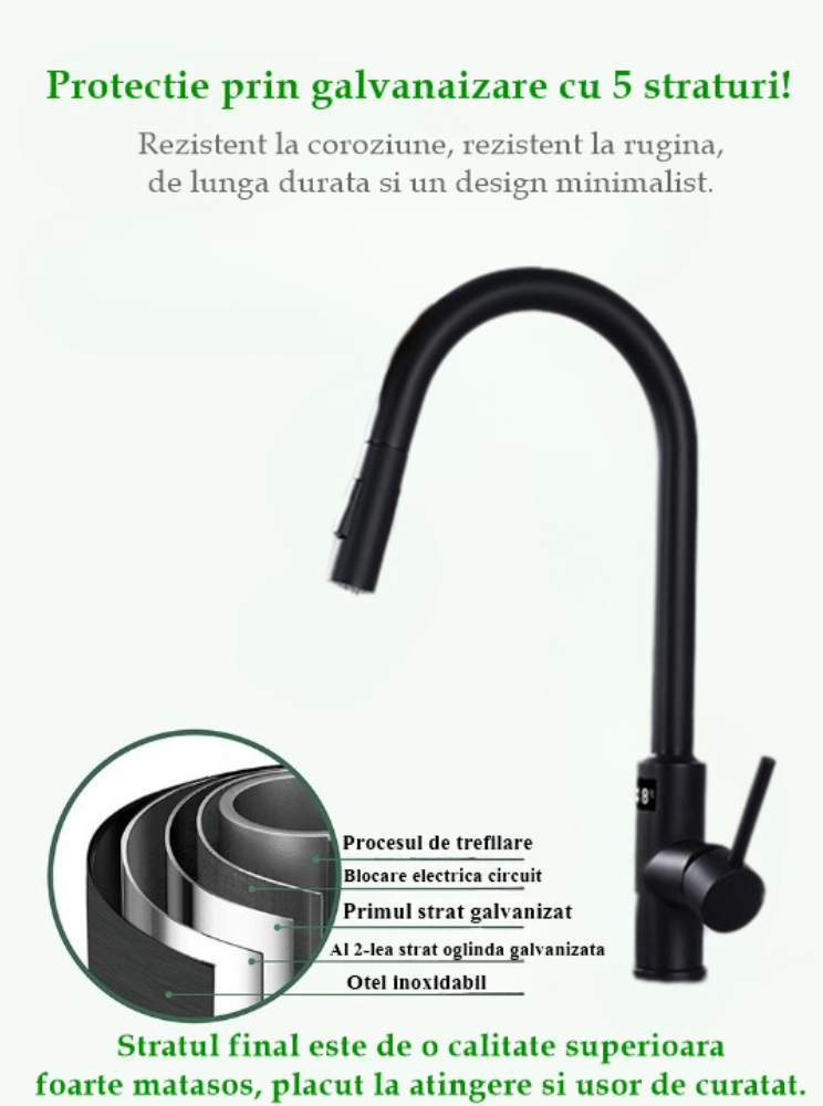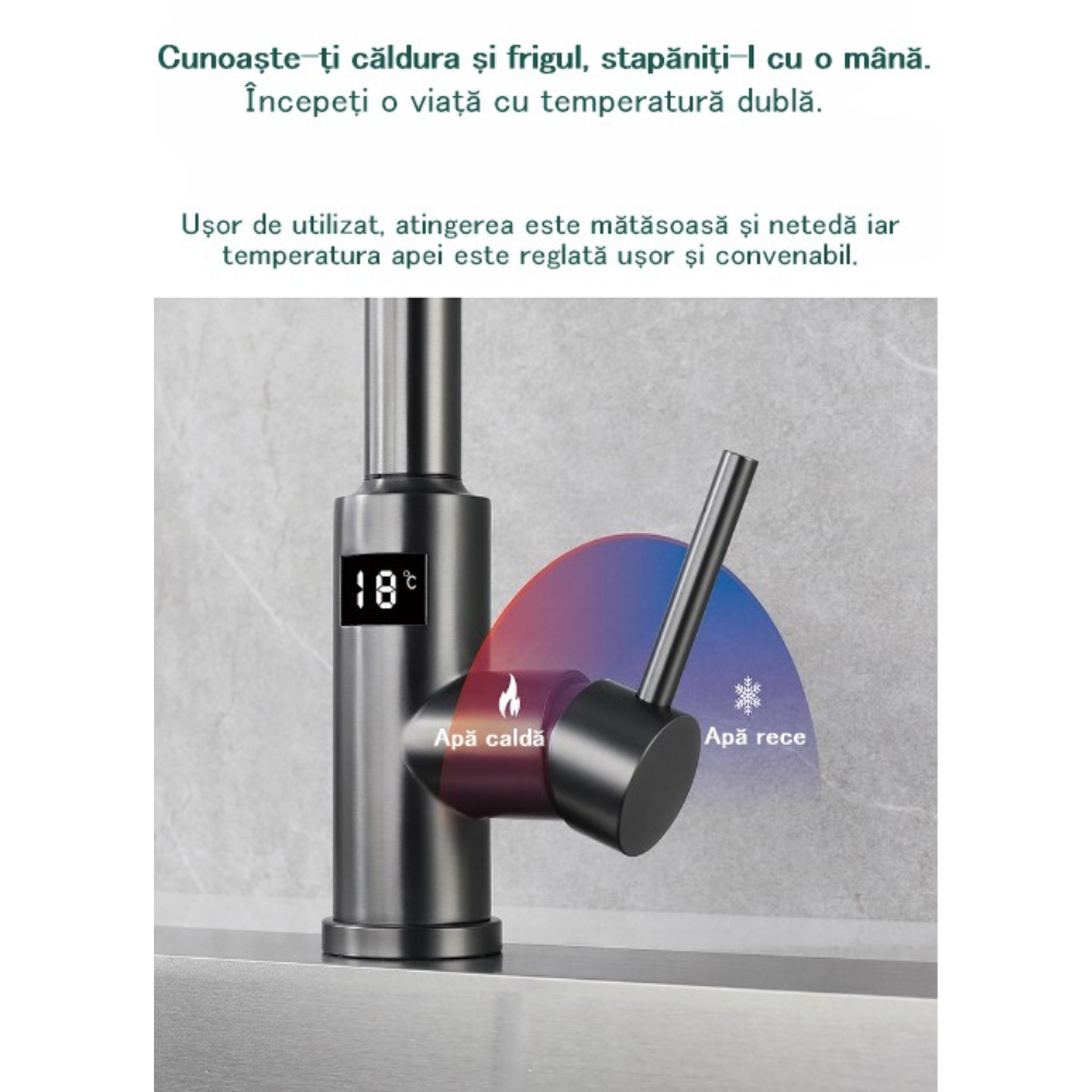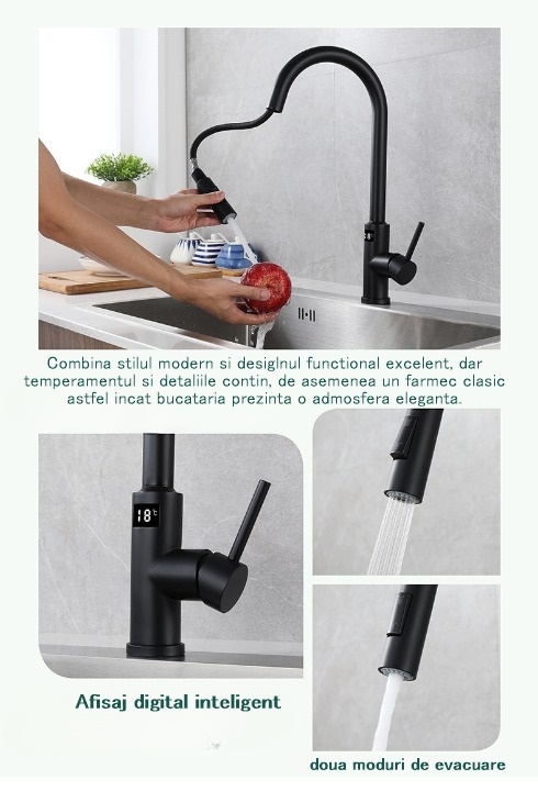 Pentru cei care apreciaza eleganta si functionalitatea in inima casei lor, prezentam bateria de bucatarie smart - un adevarat centru de comanda pentru experienta culinara perfecta.
