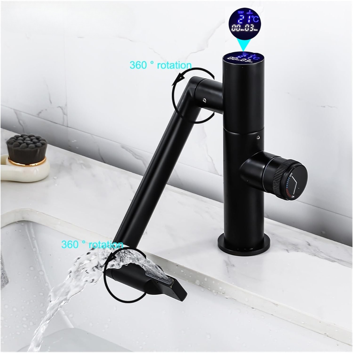 Baterie Lavoar, Chiuveta, Baie, Afisaj Digital LED Temperatura, Jet de apa tip Cascada, Rotire 360°, Montare pe Chiuveta, Monocomanda, Silentios, Smart, Modern, Ultima Generatie, Rezistent la rugina s