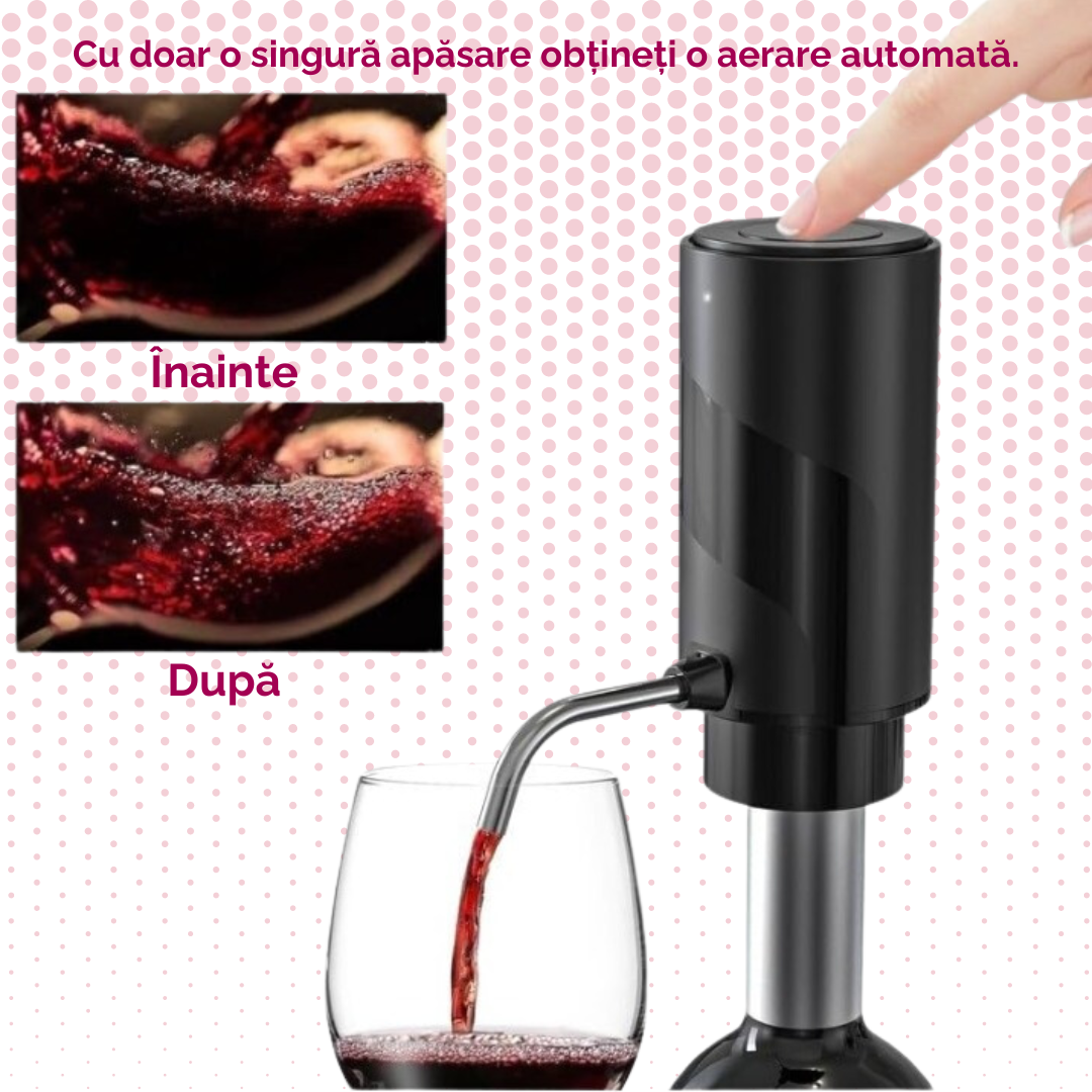 Nu doar ca deschizatorul de vin usureaza procesul de deschidere, dar acesta are si un aerator electric integrat. Acest lucru inseamna ca vinul tau va fi aerat si oxigenat intr-un mod mai rapid si mai eficient decat prin folosirea unui decantor traditional. Astfel, aromele si gusturile vinului tau se vor dezvolta complet, oferindu-ti o experienta de degustare de neuitat.